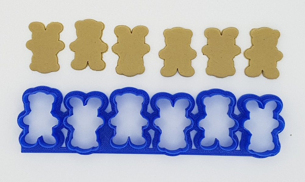 Size: Each teddy is 3cm tall x 2.1cm wide and the cutter has 6 teddies in total measuring 14.5cm wide.